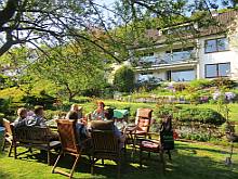 Von der Terrasse gelangen Sie unmittelbar in den wunderschönen Garten. Hier können Sie einfach "abschalten" und Ihren Alltag vergessen.